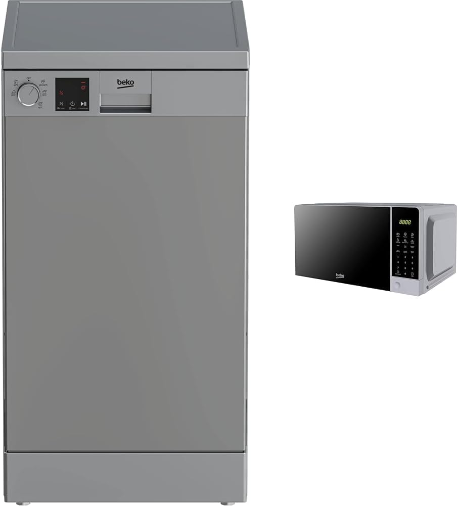 Beko DVS05024S, Lavastoviglie Slim, Argento, 44.8 x 60 x 85 cm & MOC201103S – Forno a Microonde, Digitale, 20 L, 700 W, Argento, 45,2 x 32,5 x 26,2 cm