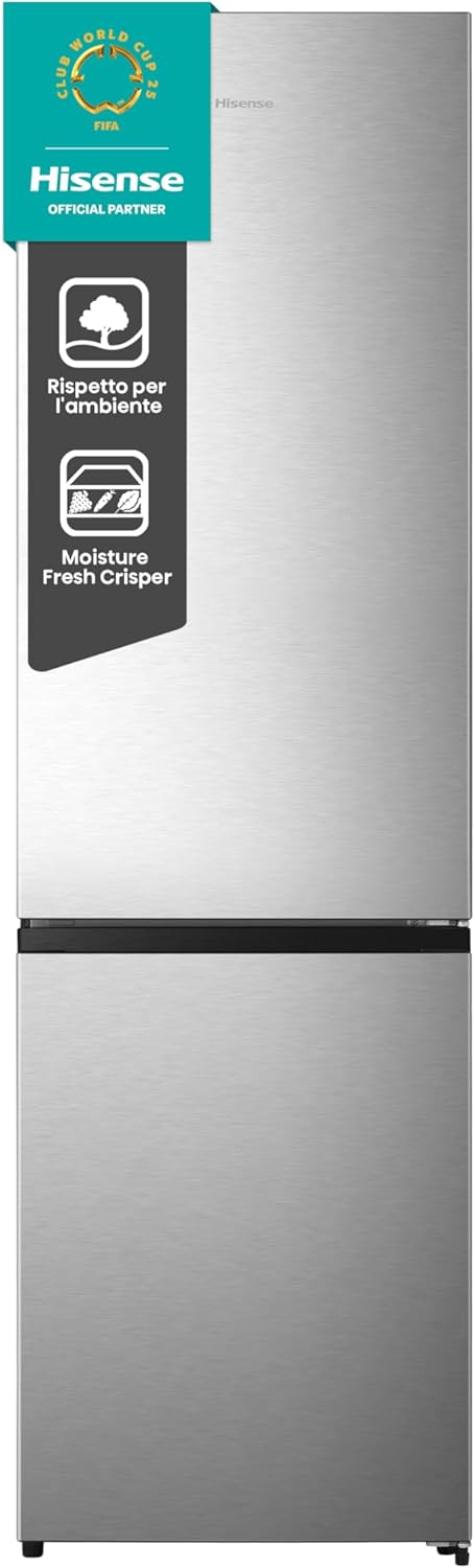 🧊 Hisense RB440N4ACA – Frigorifero Combinato Total No Frost, 335L, Classe A, Inox, Inverter, Silenzioso 35 dB, Porta Reversibile