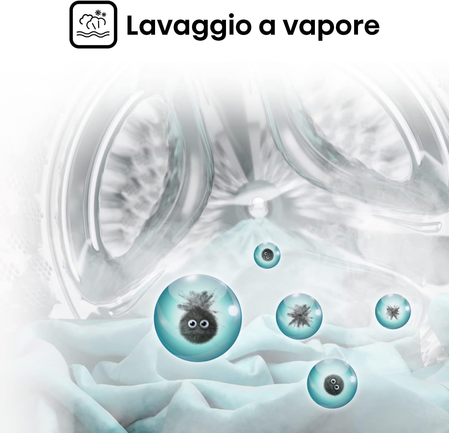 • Programmi a vapore, per capi morbidi e sanificati, rimuovendo anche i cattivi odori e ammorbidendo le fibre senza la necessità di ammorbidente