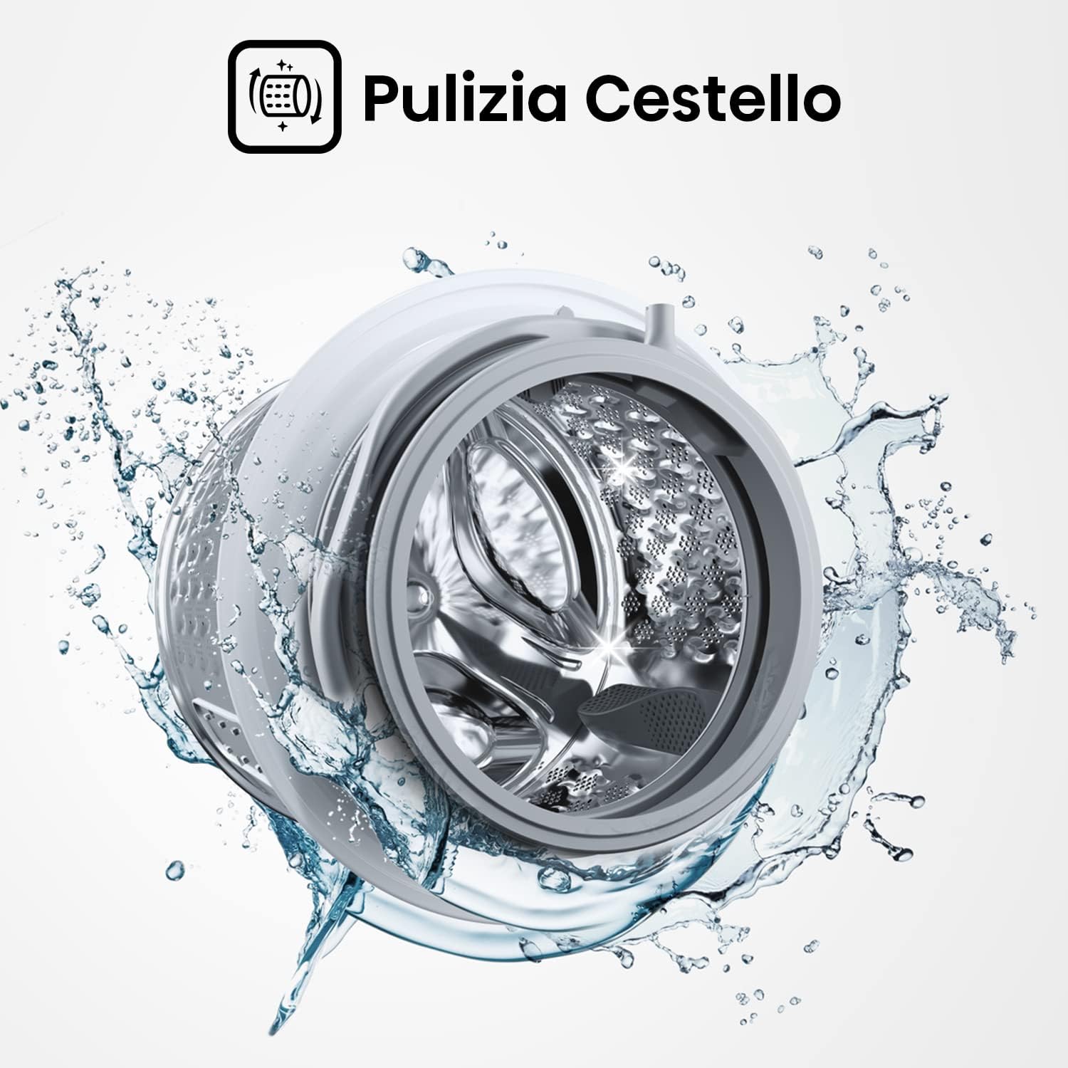 • Pulizia Cestello, l’acqua calda combinata ad una rapida centrifuga rimuove batteri che causano allergie e muffe dalla tua lavatrice