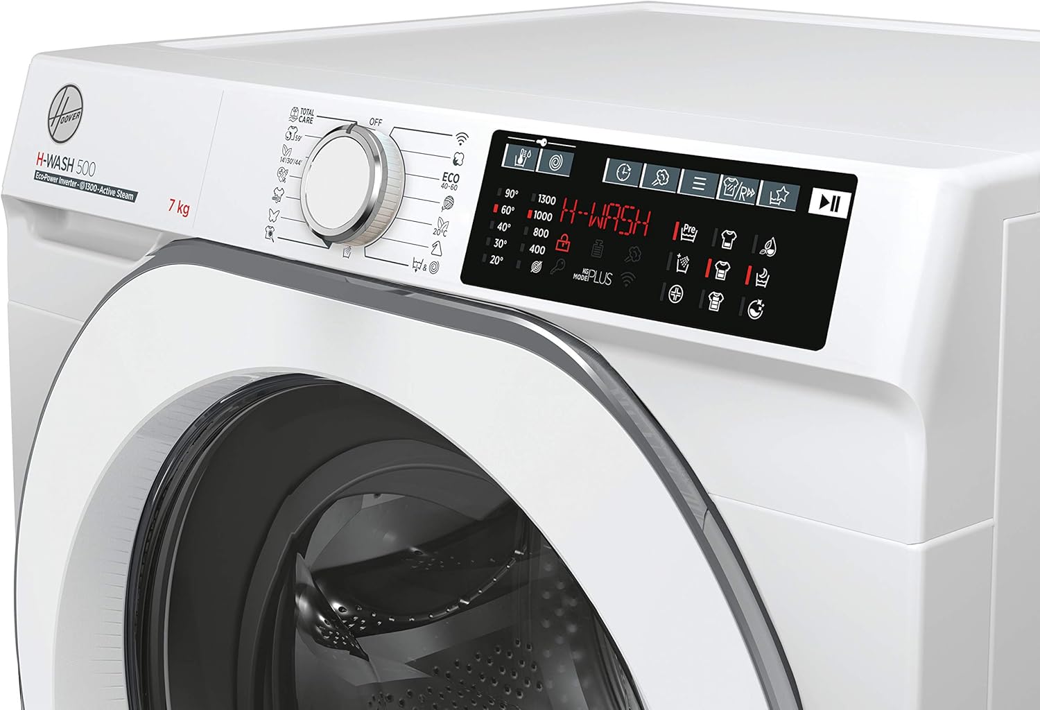 🧺 Hoover HW4 37AMC/1-S H-WASH 500 Lavatrice Smart – 7 kg, 1300 giri/min, Carica Frontale, Wi-Fi & Bluetooth, Funzione Vapore, Motore Inverter, Bianco, Classe Energetica A