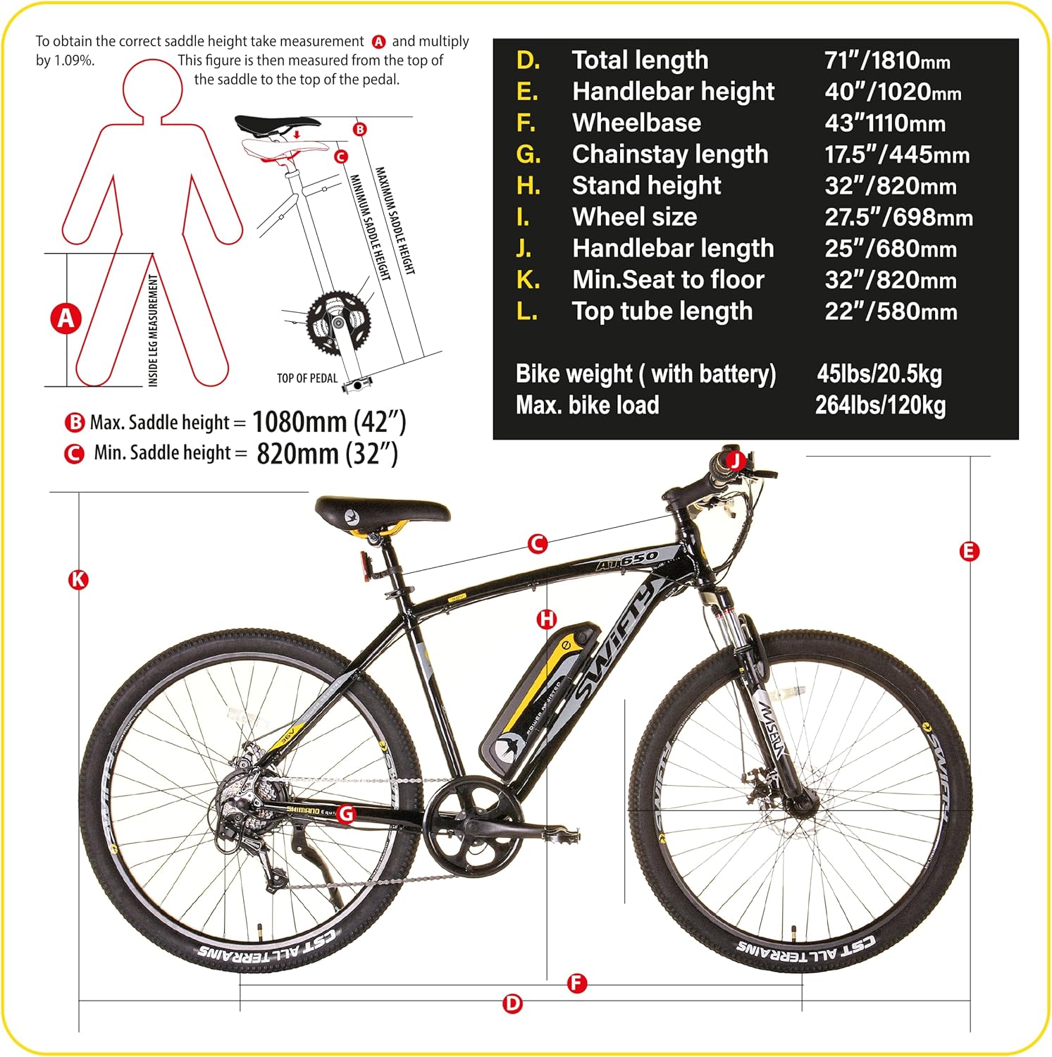 🚵♂️ Swifty AT650 – Bicicletta Elettrica Pieghevole All-Terrain da 27,5”