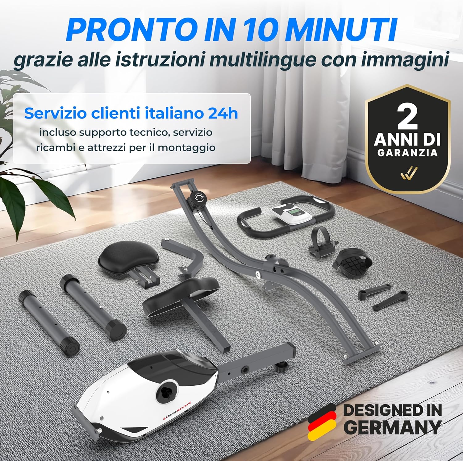 • FACILE DA MONTARE I Grazie al manuale illustrato e multilingue e agli attrezzi inclusi, la cyclette da casaè pronta all’uso in soli 10 minuti, ottima per un allenamento confortevole a casa