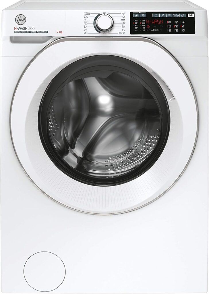 Hoover HW4 37AMC/1-S H-WASH 500 Lavatrice Smart 7 Kg, 1300 Giri, Wi-Fi + Bluetooth, Carica Frontale, Funzione Vapore, Motore Inverter, 60x45x85 cm, Bianco, Classe A